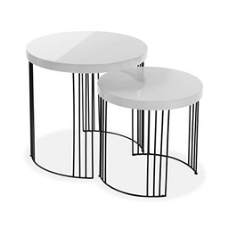 Moderna Mesilla Baja, Set de 2, Medidas (Al x L x An) 55 x 55 x 55 cm, Madera y Metal, Color Blanco
